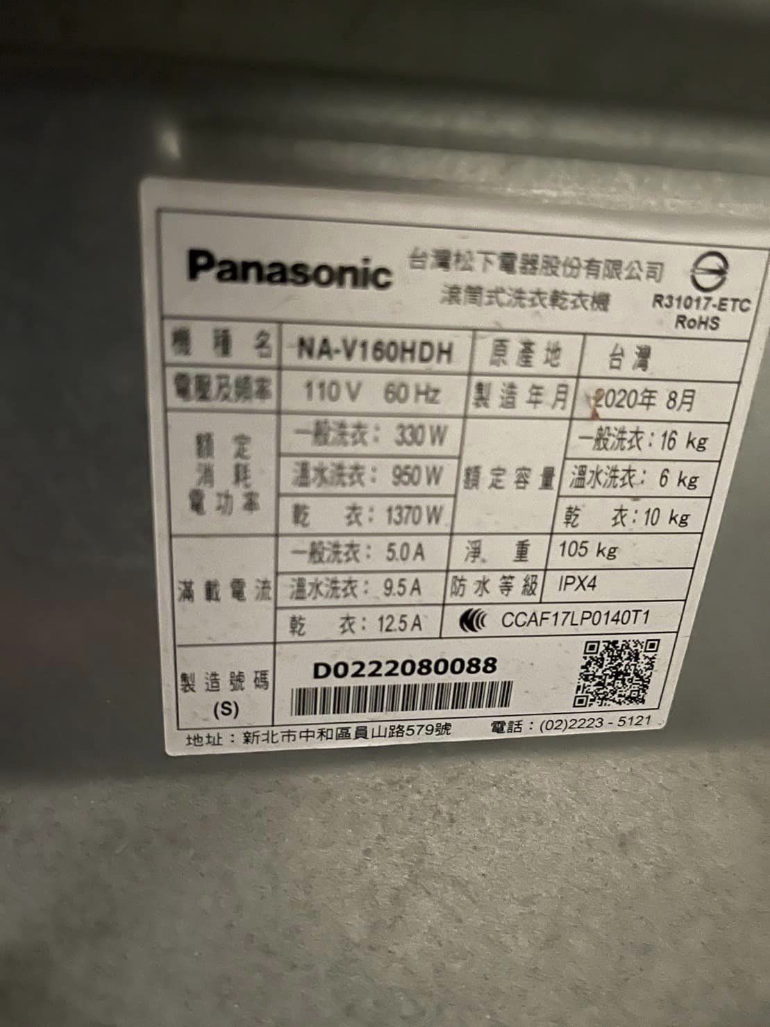 如同照片這一台國際牌滾筒洗脫烘雖然16公斤洗,但也不要放置太多衣物有時後長期運轉太過嚴重其實也會導致避震器及培林軸心會有問題哦!